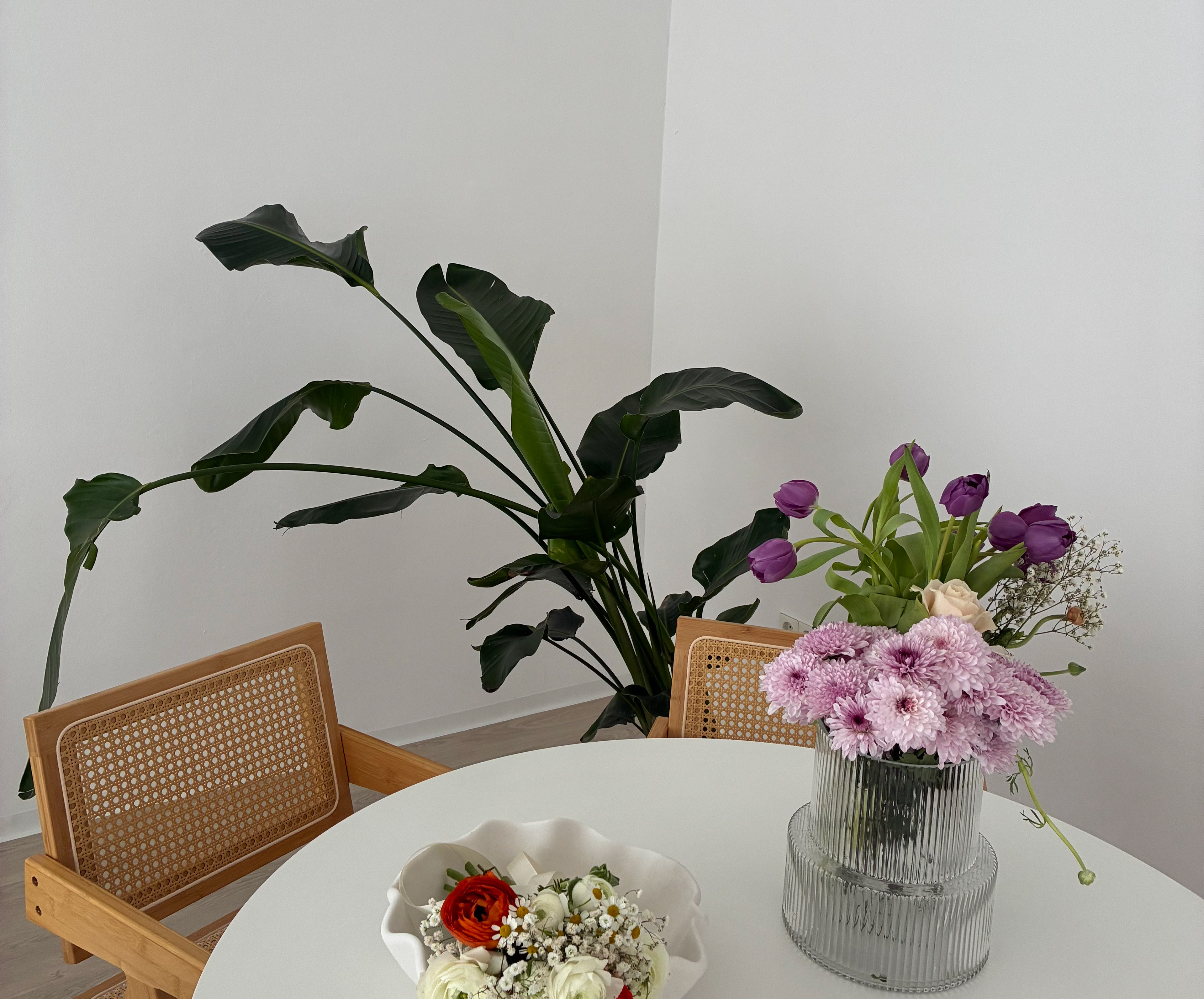 Ich stehe also auf, dusche, mach mein Make-up und föhne meine Haare, um fototauglich auszusehen. Gestern Abend habe ich sogar meine Nägel lackiert, was ich sonst nur für besondere Anlässe mache. Es ist mir sonst viel zu aufwendig. Nun gut, ich fahre mit dem Fahrrad los - es regnet. Na toll, das Föhnen hätte ich mir sparen können, da durch die Luftfeuchtigkeit eh alles grizzelig wird. Ich bin etwas genervt und innerlich angespannt. Die Hausfassade von außen sieht unscheinbar aus. Innen erwarten mich drei Freundinnen, die bereits am shooten sind. Im Hintergrund läuft entspannte Musik. Es stehen verschiedene Blumen auf dem weißen, runden Tisch. Das Studio ist modern und minimalistisch eingerichtet mit großen hellen Vorhängen vor den bodentiefen Fenstern, die auf die kleine Seitenstraße blicken lassen. Ein beiges Sofa aus Teddy Stoff, Stühle in Rattan-Optik sowie ein Hocker aus Holz bieten verschiedene Sitzpositionen für die Bilder. Es gibt unterschiedliche Farben als Hintergründe, wir entscheiden uns für ein helles beige. Ich trinke erstmal ein Glas Sekt, um locker zu werden. Die anderen Mädels sehen so schön aus, sie haben ihren eigenen Stil. Für mich wirkt es so, als ob sie sich vor der Kamera wohl fühlen. Ich frage mich, ob es eine gute Idee war, herzukommen. Ich habe meine lange weite braune Hose an und ein weißes Tshirt mit brauner Teddy-Weste. Eigentlich mag ich das Outfit, aber vor Ort bin ich mir plötzlich nicht mehr sicher, ob es die richtige Wahl war. Hätte ich eher etwas schickeres anziehen sollen, um professioneller auszusehen? Jetzt ist es zu spät. Im Nebenraum lege ich meine Sachen ab und tausche mich mit einer Freundin kurz aus, wie es mir geht. Ich bin ehrlich und erzähle ihr von meinen Struggles. Sie kann es verstehen und macht mir Mut, das Shooting ganz entspannt zu sehen und auf mich zukommen zu lassen. Wir sind alle am Lernen und Ausprobieren. Eine Restanspannung bleibt, die auch vor der Kamera nicht weichen will. Wir probieren verschiedene Settings aus. Ich fühle mich immer noch unwohl und unnatürlich, kann meinen Gesichtsausdruck nicht richtig steuern. Aber ich lasse mich drauf und und versuch es einfach. Wie die Fotos wohl aussehen werden? Ob ich mich schön finden werde? Ich weiß es nicht. Ich bin erstmal froh, dass ich mutig war.